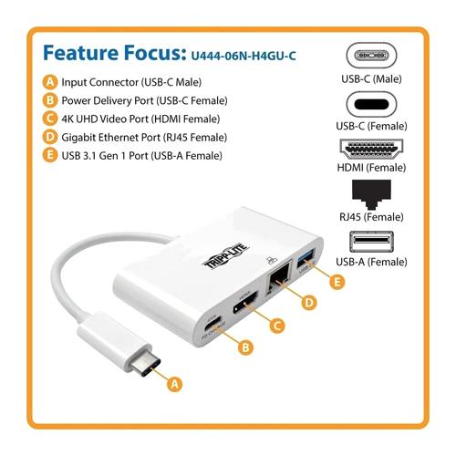 Adaptador TRP USB-C a HDMI con Hub USB-A Gigabit Ethernet – U444-06N-